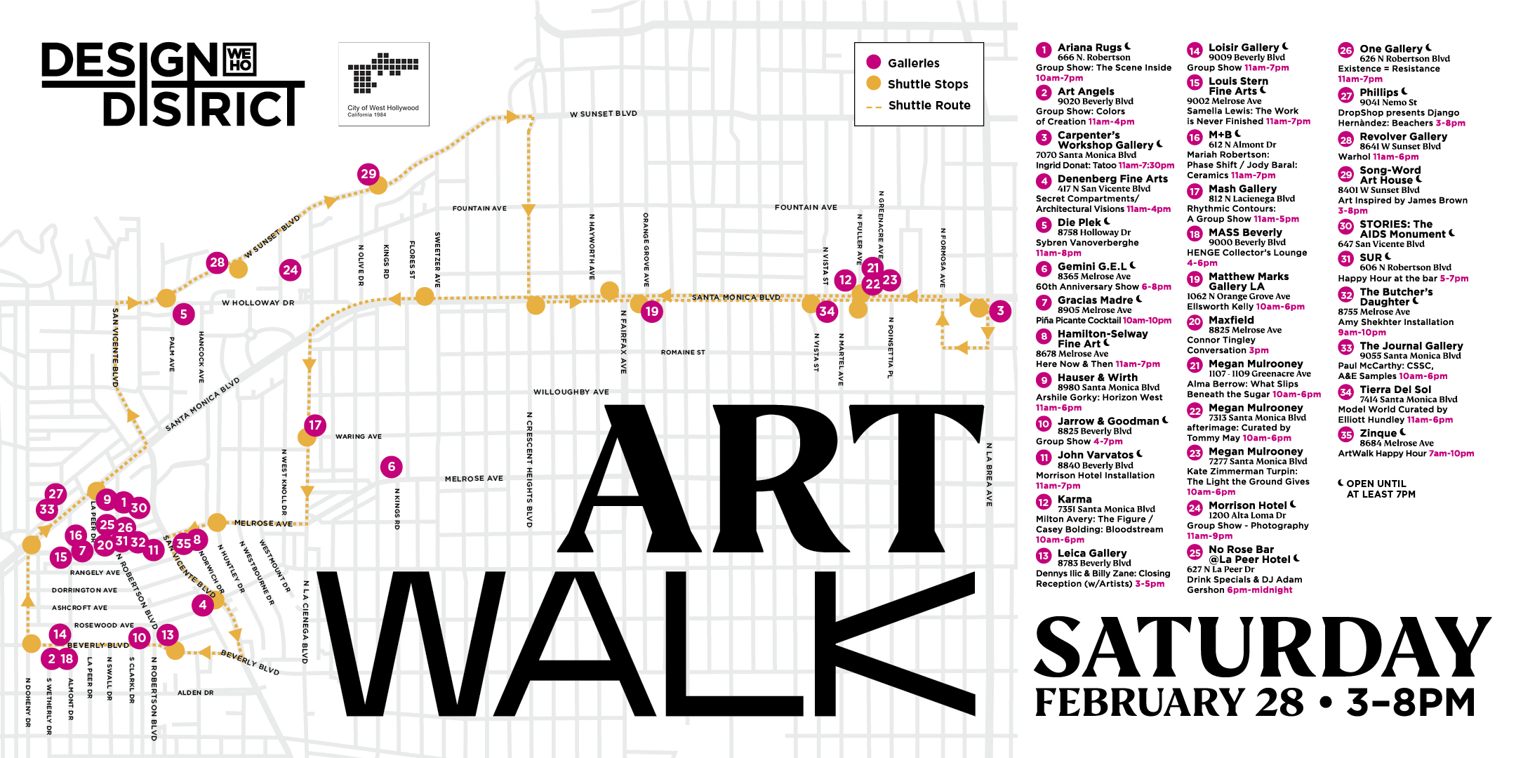 Park your car and enjoy free shuttle transportation throughout West Hollywood’s main gallery corridors from 3 – 7:30pm.